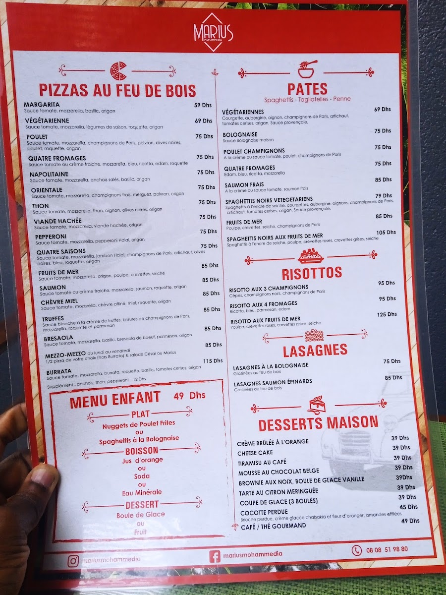 Welcome to Marius Mohammedia, a hidden gem located on Rue Bourgogne, Mohammédia, Morocco. This modern restaurant boasts a warm, inviting atmosphere that greets diners as soon as they walk in. The extensive menu is truly impressive, offering an array of dishes that cater to diverse palates.